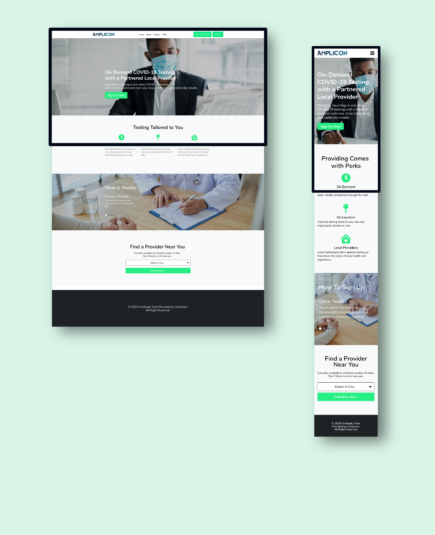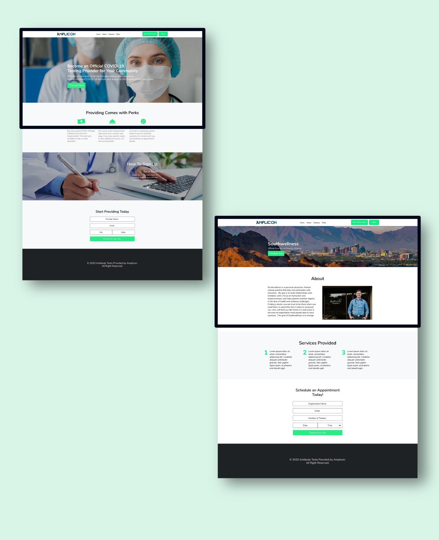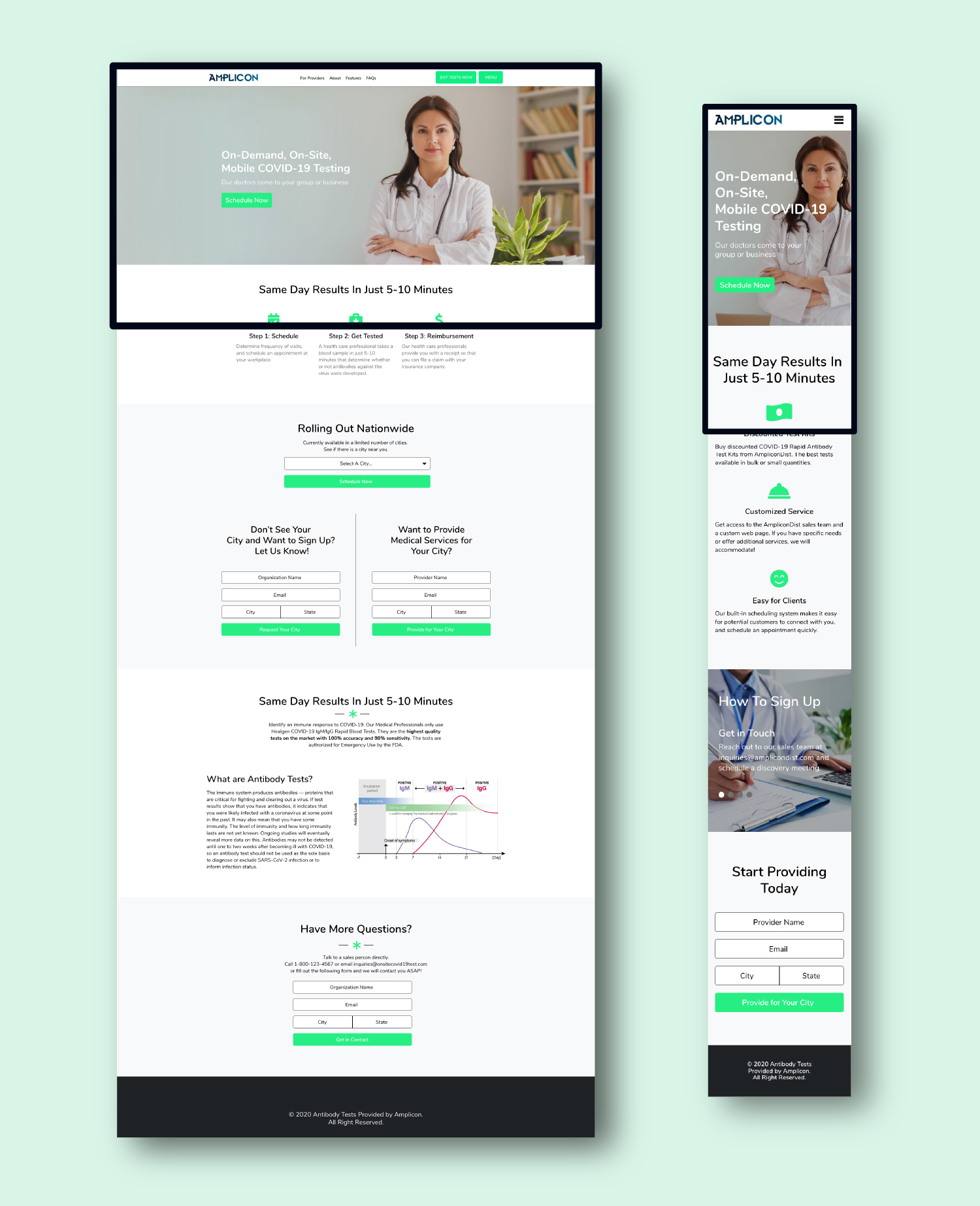 From all the content and work my managers and I had done came OnSiteCovid19Test.com, a spin off sub-brand and minimum viable product for the program. I created mockups for the site, presented these to my managers to ensure they contained all the required functionality, and then built the website using Webflow, Zapier, Airtable, Calendly, and Memberstack.